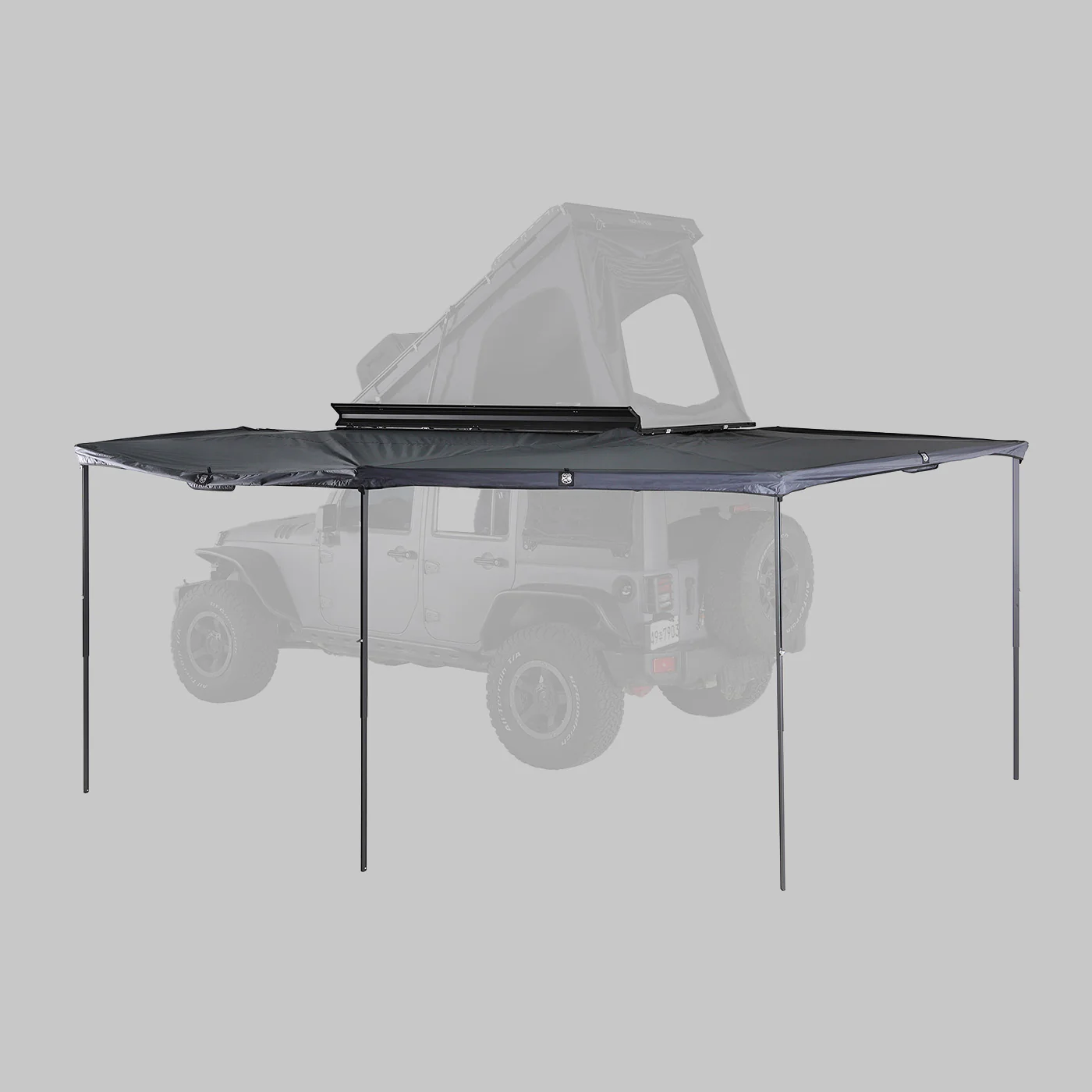 Note: The ExoShell 270 awning does not include universal mounting hardware. Aftermarket support brackets may be required to ensure compatibility with your roof rack, vehicle, or camper setup.