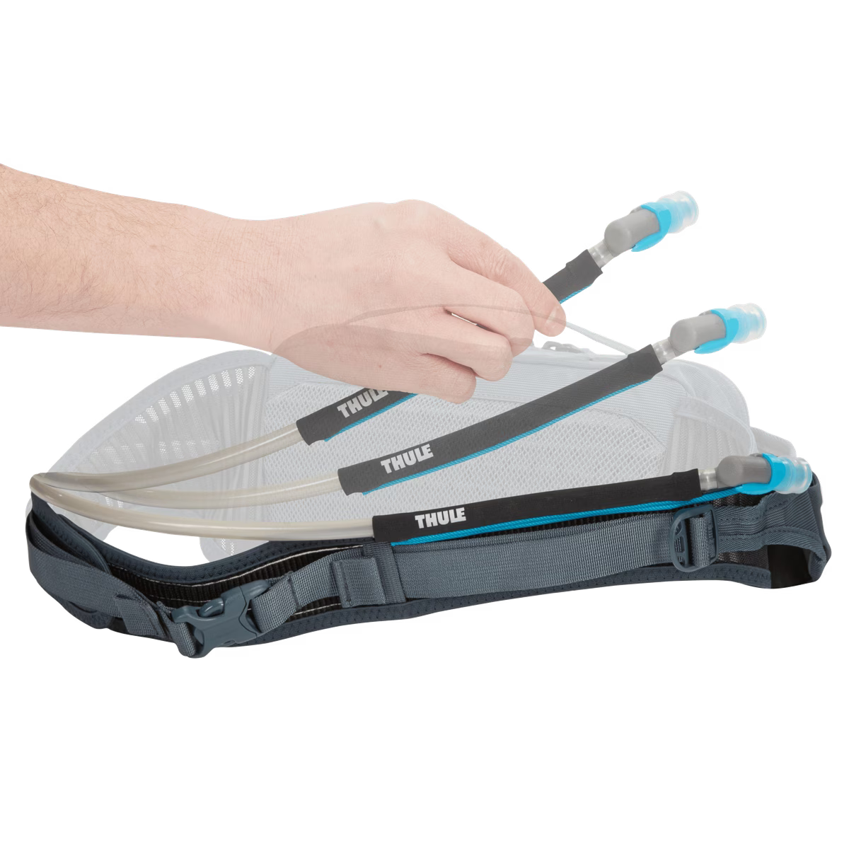 The Thule ReTrakt hydration hose has a magnetic design which snaps automatically back in place in between sips. This helps you stay hydrated without taking your mind off the trail. This hydration hip pack also provides superior stability and breathable materials for a comfortable ride, and the reflective elements and bike attachment loops for visibility at night. Access your phone easily on the bike with one hand and store your tools and snacks in the organized internal pockets. This hydration pack is perfect addition to your 1-3 hour rides.