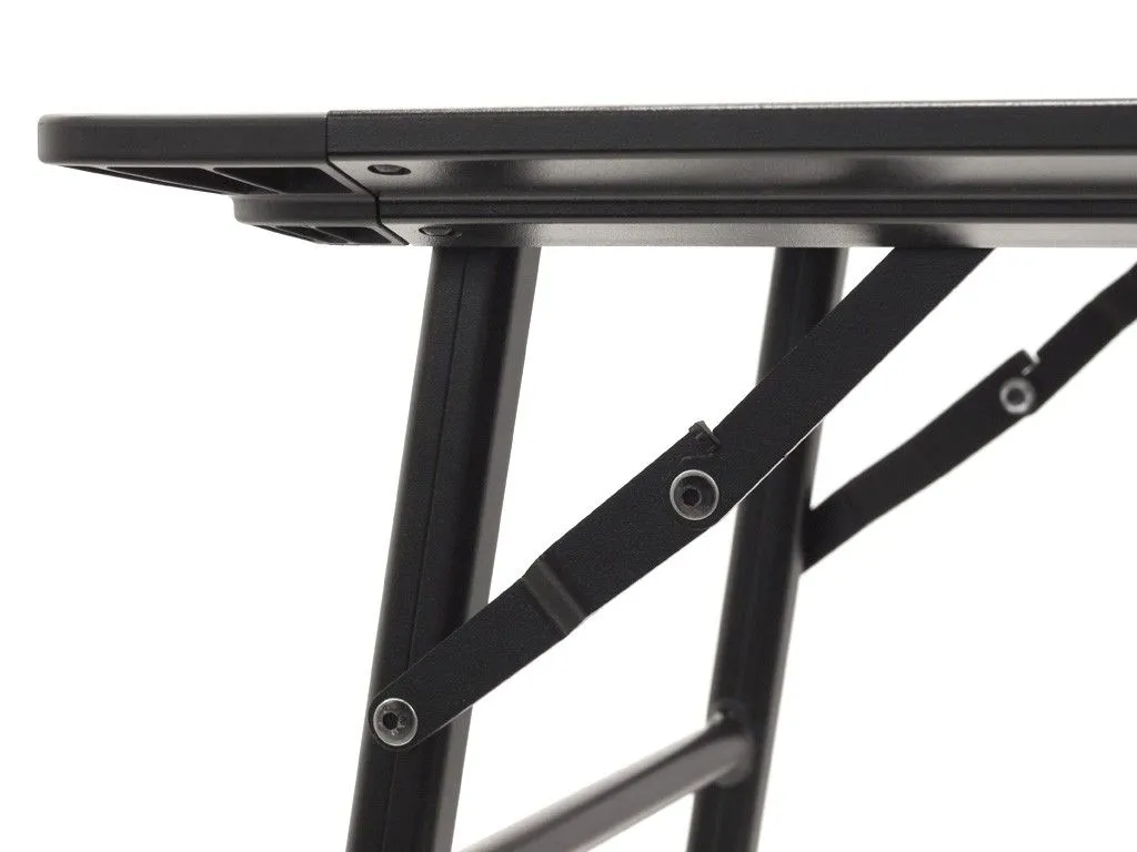 A complete camp table and table storing solution. Effortlessly take a previously cumbersome luxury item on any vehicle based adventure. Pro Stainless Steel Camp Table - by Front Runner: The extruded aluminum frame nests into the storage brackets and is secured with the table latch eliminating any excessive noise. A durable stainless steel table top ensures a hygienic surface for the preparation and serving of meals. The table frame and legs are powder-coated black with the same durable, corrosion resistant coating as the Front Runner Slimline II Roof Rack. The Legs easily unfold and with the open-and-lock mechanism are kept firmly in place. Rounded glass filled nylon corners prevent any accidental knicks or damage and provide a grip point when removing the table from under your roof rack. Under-Rack Table Brackets - by Front Runner: A no-noise and secure storage solution designed specifically for the TBRA015. The brackets can be mounted both parallel and perpendicular to the roof rack's slats giving the options to access to the table from the side or rear of the vehicle. Easy installation. Made of steel and is black powder-coated in the same durable and corrosion resistant coating as the Front Runner Slimline II roof rack. Under-Rack Table Slides Latch - by Front Runner: Keeps the TBRA015 securely stored in the Under-Rack Table Brackets - by Front Runner. Secured to the top of the Slimline II roof rack using the T-slot and clamps over the lip of the table to keep it in place. A rubber insert prevents rattling and damage to the table. Spring loaded for ease of use. Lockable for added security. Made of steel and is black powder-coated in the same durable and corrosion resistant coating as the Front Runner Slimline II roof rack. NOTE: Table fitment requires 65mm (2.5'') clearance from under the rack to highest point of the roof.Side mounting requires 5 open slatsRear mounting not suitable for vehicles with rear roof antennaStill unsure? Contact the Front Runner Help Center