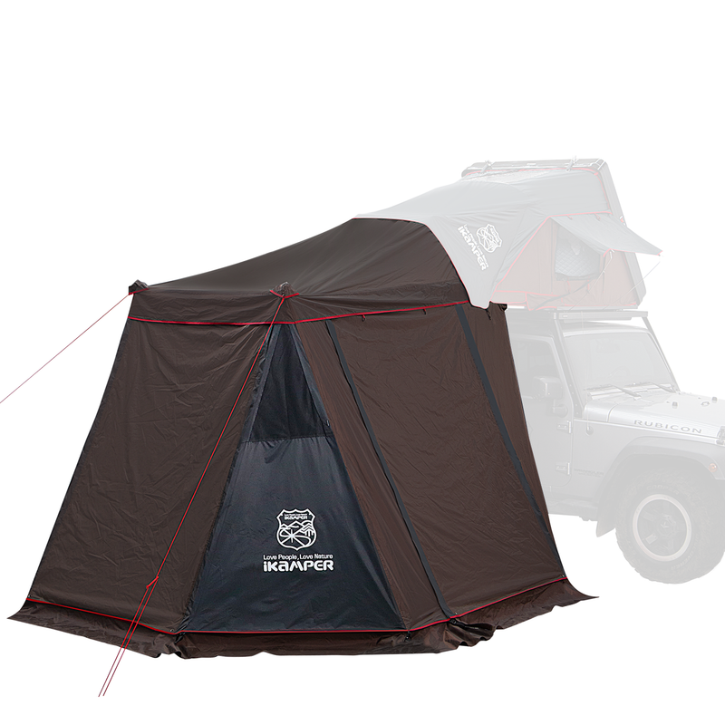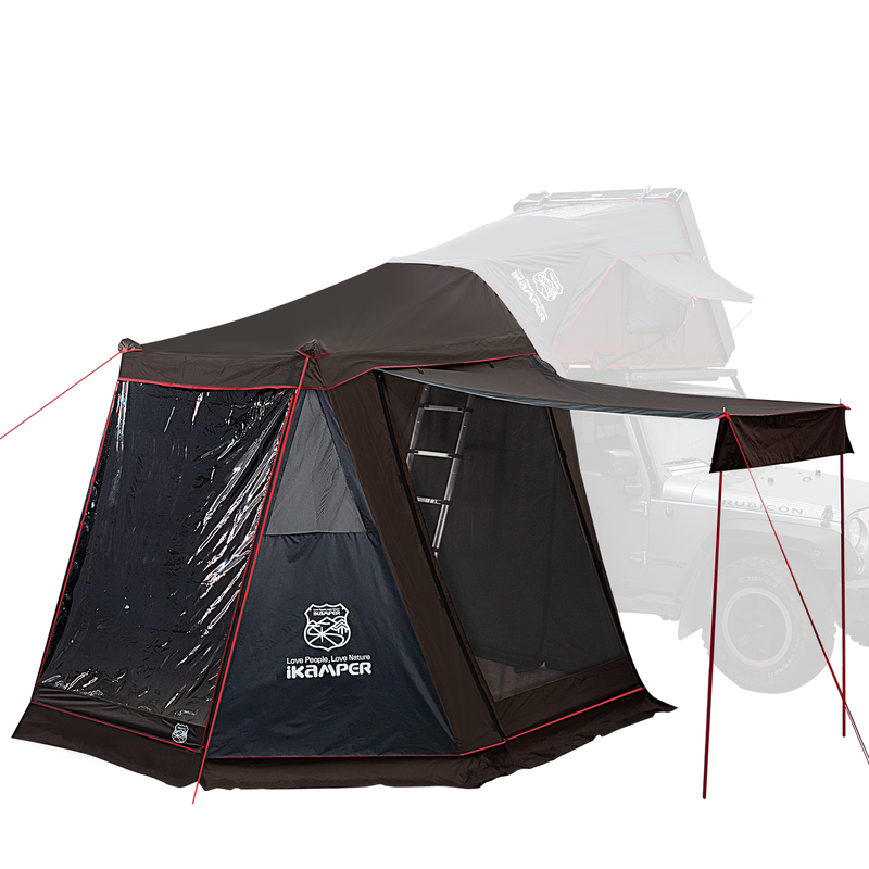 iKamper Skycamp Mini Annex HI: The Ultimate Ground-Level Room for Taller Vehicles. Expand your overlanding living space with the iKamper Skycamp Mini Annex HI. This weatherproof enclosure zips directly to the entrance of your Skycamp Mini rooftop tent, creating a secure "downstairs" room for storage, dining, or a dry changing area. The "HI" model is specifically engineered for vehicles with a crossbar height between 67.3" and 78.7", making it the perfect fit for lifted rigs and high-clearance trucks. Constructed from 150D Ripstop Polyester with a 3000mm waterproof coating, it features three massive doors with mosquito netting that can be converted into canopies for maximum shade and airflow.