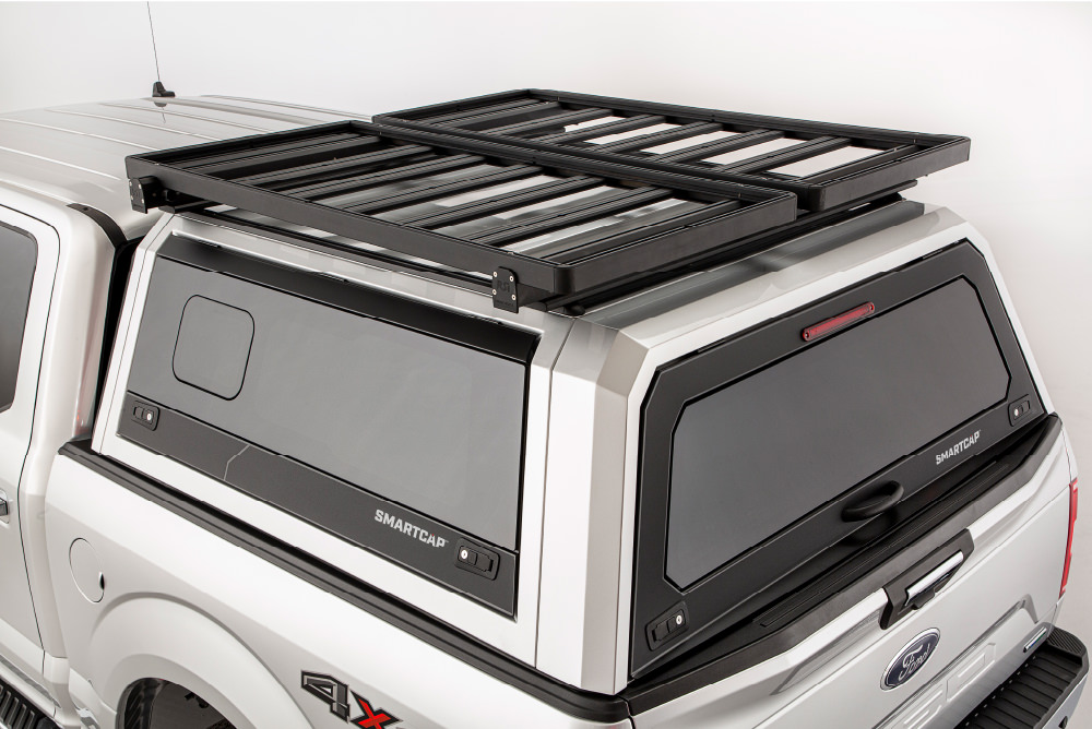 Improve safety and speed in managing rooftop items with the SmartCap™ Drop Rack. This clever drop-down mechanism brings the loading platform down to an easily accessible height, eliminating the strain of lifting heavy items overhead. It's the ultimate accessory for efficient truck cap cargo handling and works seamlessly with Smart Components like the Camp Kitchen for a fully outfitted adventure or work rig.