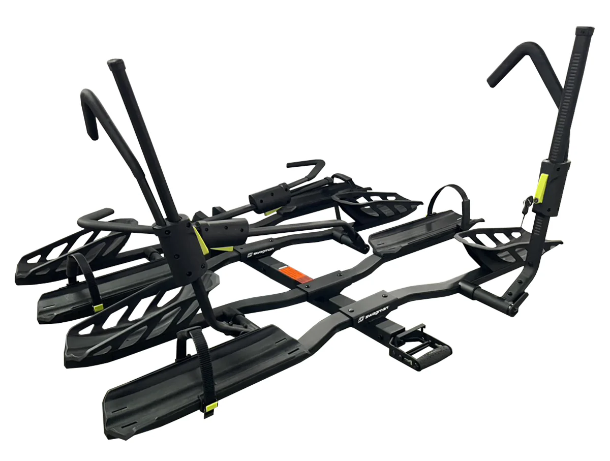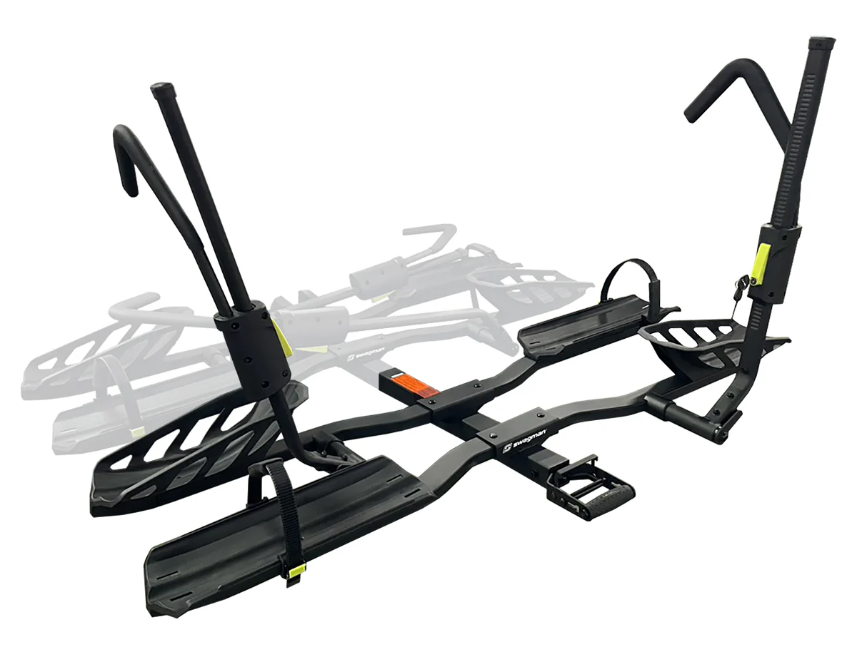 The Swagman Escapee Pro Add-On is the ultimate expansion kit for growing families and group expeditions, seamlessly transforming your two-bike Escapee Pro into a high-capacity four-bike carrier. This heavy-duty extension maintains the premium zero-frame-contact design of the base rack, utilizing locking ratchet arms that secure bikes solely by the tires to protect delicate carbon frames and custom paint jobs. Engineered for the long haul, the Add-On is fully RV-approved, ensuring it can withstand the rigorous vibrations and forces experienced on the rear of motorhomes and travel trailers. Supporting two additional bikes at 45 lbs each, this modular system features upgraded wheel trays compatible with everything from narrow road tires to 5-inch fat tires, and integrates perfectly with the base rack’s external tilt-and-fold handle for continued easy access to your vehicle’s rear cargo area.