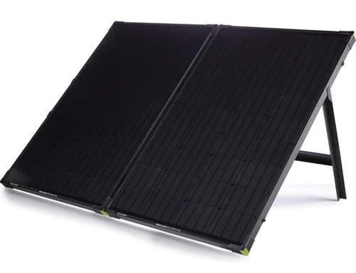 Goal Zero Boulder 200 Briefcase: High-Efficiency 200W Portable Solar Panel. Harness maximum power from the sun with the Goal Zero Boulder 200 Briefcase. This high-capacity solar kit features two 100-watt monocrystalline panels joined by a heavy-duty hinge, allowing for easy transport and setup. Built with high-strength tempered glass and a corrosion-resistant aluminum frame with reinforced corner protection, it is designed to withstand the elements during extended off-grid stays. The integrated kickstand allows you to find the perfect angle for solar intake, while the high-power port (HPP) ensures fast charging for your Goal Zero Yeti power stations. When the trip is over, the panels fold down into a compact briefcase shape and tuck into the included protective canvas bag for secure storage.
