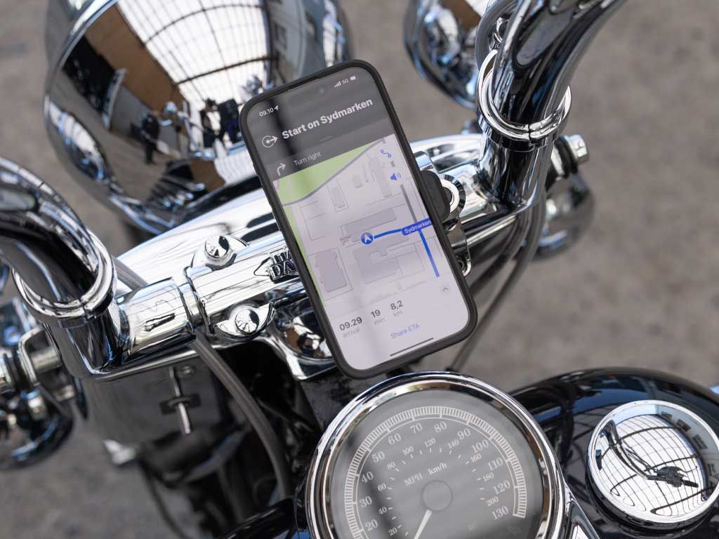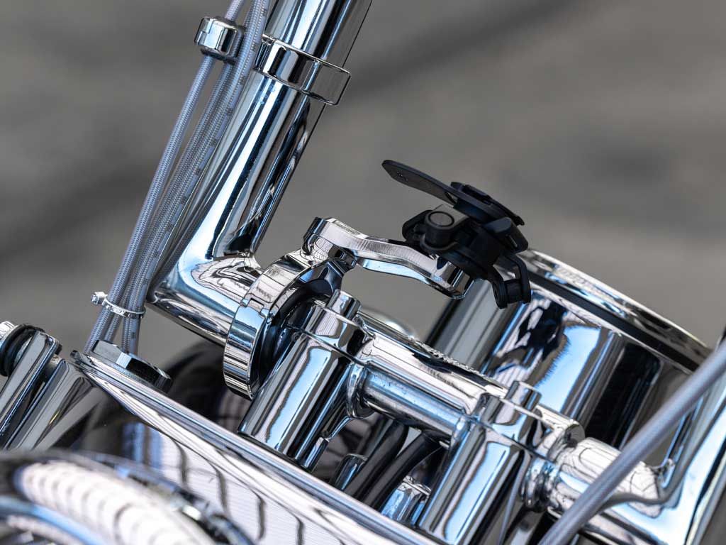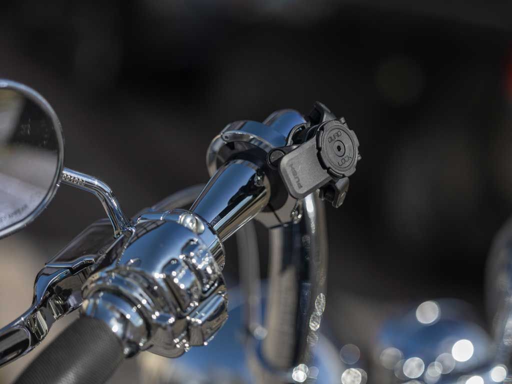 The Quad Lock Motorcycle Handlebar Mount Pro Chrome - Large is specifically engineered for motorcycles with oversized 1.5-inch (38mm) handlebars, common on modern heavy cruisers and custom builds. This "Pro" edition combines the world-class security of the Quad Lock system with a premium, high-luster triple-plated chrome finish that perfectly matches OEM chrome components. Precision-crafted from CNC machined aluminum, it features a robust build that withstands high-speed wind pressure and road vibration. The mount utilizes the patented dual-stage locking mechanism, providing a rock-solid mechanical connection for your smartphone. With an adjustable extension arm and a discreet cable routing channel, it offers a clean, integrated look while ensuring your navigation remains perfectly positioned in your line of sight.