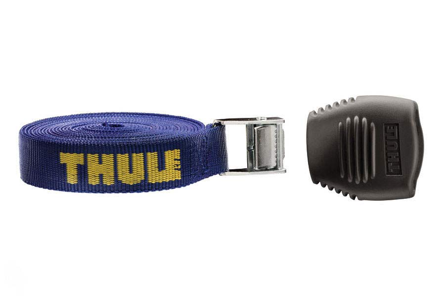 The Thule Load Straps 523 are 15 feet long and come in a 2-pack with a blue finish. These durable straps are designed to securely fasten your cargo to the roof rack, ensuring safe and reliable transport of your equipment.