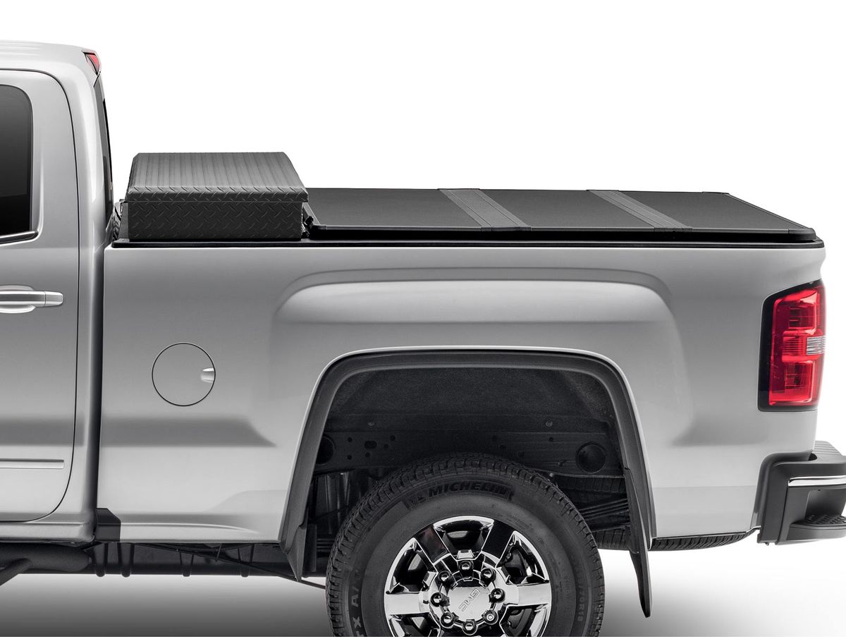 The Solid Fold 2.0 Toolbox Tonneau by Extang provides the best in weather and UV protection while sill allowing for instant cargo access. It is designed for full size trucks with 6 1/2 and 8 bed lengths and will match up the most 18-20 in standard toolboxes. The Solid Fold 2.0 Toolbox Tonneau comes equipped with a mountain rail that permits quick installation along with a watertight seal up against the toolbox. It is made of heavy-duty automotive grade TPO skins with a Polypropylene core for the ultimate in dent resistance. The lightweight design and easy to use clamping system makes this tonneau cover our most versatile cover yet.