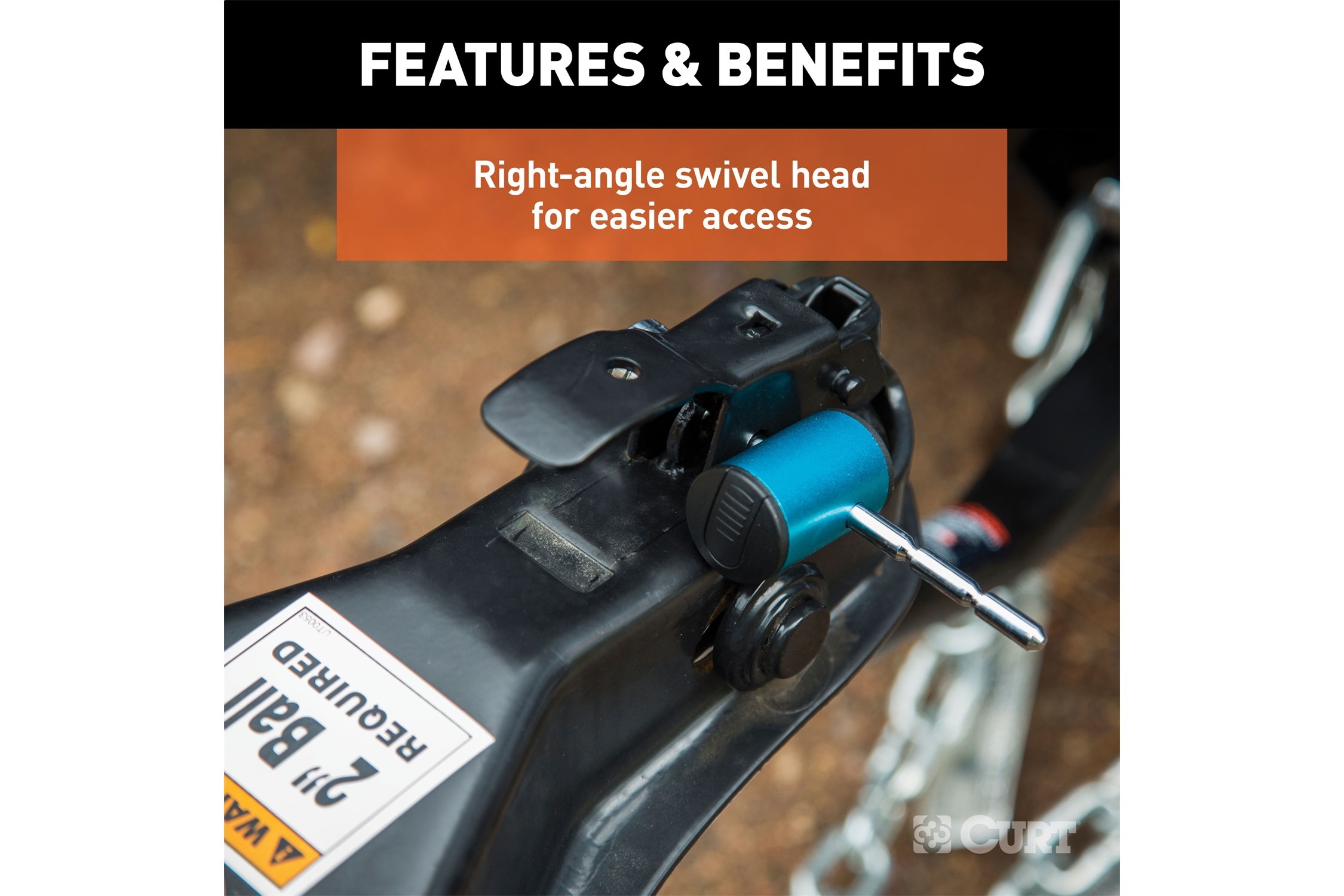 Sometimes a safety pin and coupler latch are just not enough to keep your toys safe. While CURT safety pins and coupler latches are made to keep your coupler securely latched onto your trailer ball, they are no substitute for the locking power provided by a CURT coupler lock. CURT coupler locks are designed to add security to your trailer and towing equipment. Instead of merely retaining the coupler latch mechanism, they lock it into place and greatly deter any tampering and theft of your trailer while it is coupled to your vehicle. CURT coupler locks are key-operated and come in several different styles for you to choose from. This coupler lock features a right-angle barbell design to keep the pin well protected from tampering. It comes with a chrome finish with blue anodized aluminum and offers an adjustable pin span from 1" to 3" with a pin diameter of 1/4". All CURT coupler locks are made to fit latch-type couplers and include two keys. Protect your boat, your camper and even your utility trailer the right way with a CURT coupler lock.