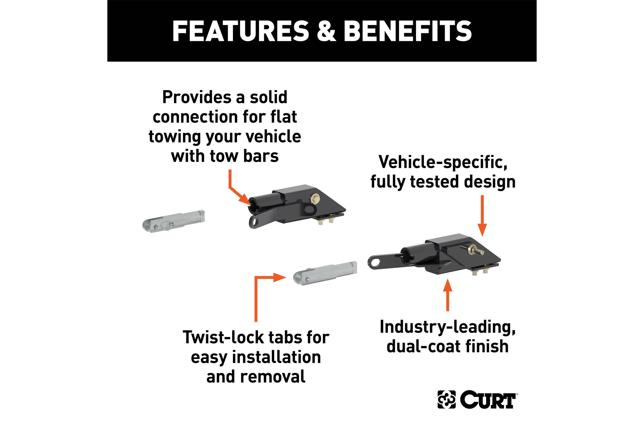 CURT tow bar base plates are engineered for a custom fit on each unique vehicle. This custom tow bar base plate fits select years of the Chevrolet Silverado 2500 HD and 3500 HD and GMC Sierra 2500 HD and 3500 HD (see application info to verify fitment). It features an OE style design to fully integrate with the front of the vehicle and maintain a factory look. This Silverado / Sierra tow bar baseplate is constructed from high-quality steel and is precisely welded for a perfect fit. It is physically tested for absolute safety and peace of mind while dinghy towing. It also features a unique co-cured finish of liquid A-coat and highly durable powder coat to protect against the outdoor elements. This base plate for towing comes with attachment tabs, safety cables and installation hardware.