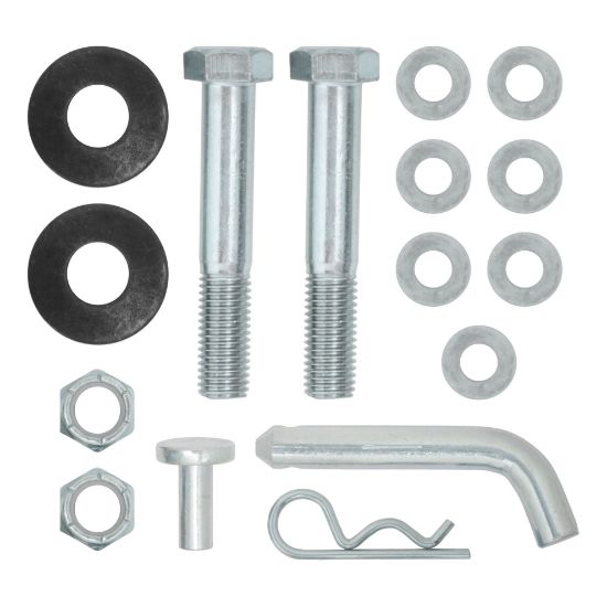 The CURT weight distribution hitch is a specialized towing system that provides improved vehicle and trailer control by leveling the trailer and more evenly distributing its tongue weight across the trailer's and vehicle's axles. Weight distribution hitches are commonly used on travel trailers and campers but can also be applied to other large loads. This replacement hardware kit for round bar weight distribution hitches with integrated lubrication includes the necessary hardware for attaching the weight distribution head to an adjustable shank. It includes bolts, an adjustment pin, washers and a pin & clip.