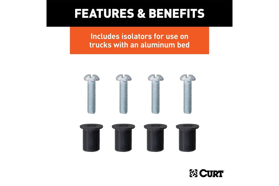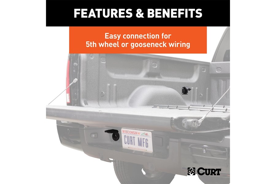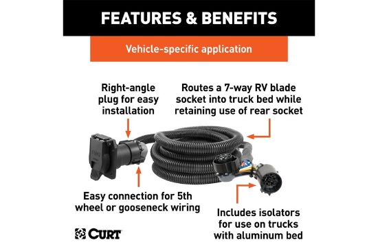 There is nothing like the luxury and power that go along with heavy-duty towing. 5th wheel RVs offer a deluxe, home-away-from-home experience unlike any other, while gooseneck trailers possess a strength that far surpasses most other trailer options. As with any trailer, however, 5th wheels and goosenecks must be equipped with the proper lighting and electrical systems, and tend to require even more complex connectors than a standard receiver-type trailer setup. Make things simple with a CURT 5th wheel / gooseneck extension harness. These wiring harnesses are designed to put an extra connector socket in the bed of your pickup truck while still retaining power to the rear connector socket mounted on your bumper. This is done by plugging into the back of the existing original equipment (OEM) harness and routing through the body of the truck to a hole in the truck bed, providing a connector that is ready to accommodate your 5th wheel or gooseneck trailer. This CURT extension harness is designed to work with 7-way RV blade connectors and comes in a length of 10'. It is compatible with certain years of the Ford F-150, F-250 Super Duty and F-350 Super Duty (see application to verify fitment). For trucks with an aluminum body, galvanic corrosion can become a problem when installing vehicle-to-trailer wiring without the appropriate protection. This kit includes isolators that allow you to install the wiring harness extension in an aluminum truck bed without having to worry about ruining the truck's finish. It includes four bolts for secure mounting and four plastic well nuts to isolate the fasteners from all aluminum surfaces.