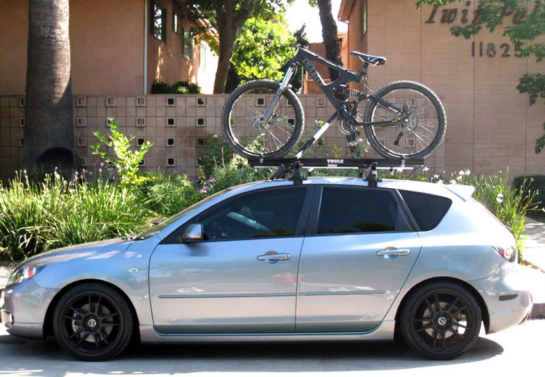 The first question you need to answer is if you want to put your bikes on the roof, or behind your car on a hitch. The Mazda3 can have a Class 1 (1 ¼”) hitch added easily which will allow you to carry up to two bikes on a rear-mounted bike rack. If you have heavy bikes, or already have your roof filled up with other gear, this may be the best option for you.